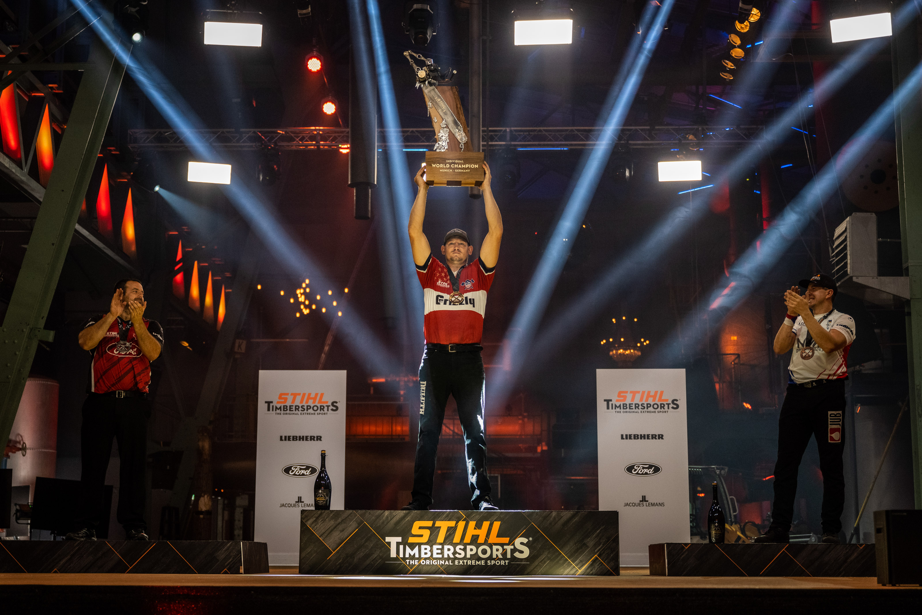 Les 12 meilleurs athlètes du monde entier se sont affrontés pour le titre mondial individuel STIHL TIMBERSPORTS®. La compétition s'est terminée par une finale How Saw passionnante, au cours de laquelle Lentz a dû attendre anxieusement de voir si son temps de 5 secondes 70 centièmes serait validé, car le jury devait vérifier un éventuel faux départ.